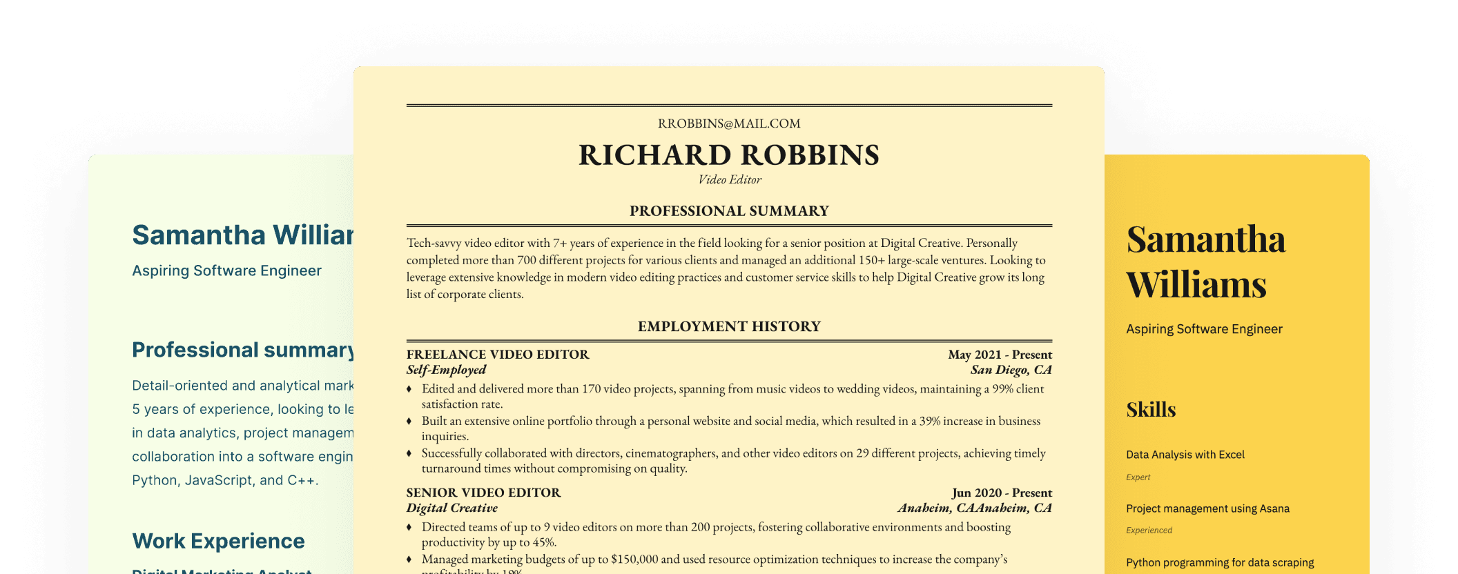 Create professional resumes in minutes with a smart AI builder and 200+ customizable templates.